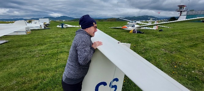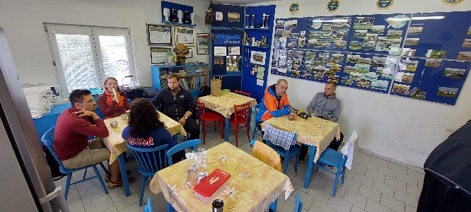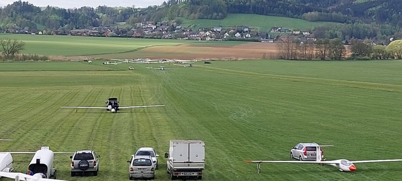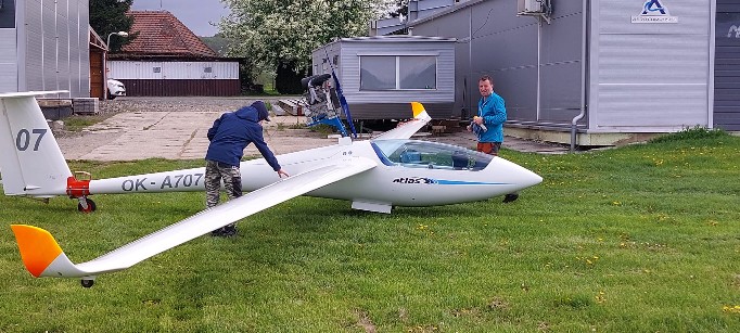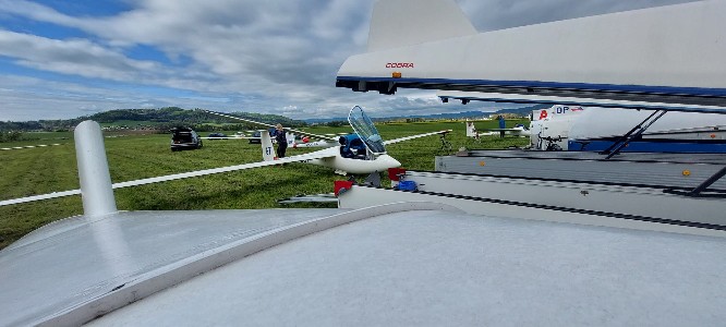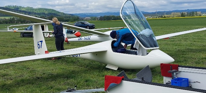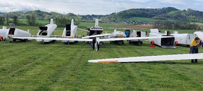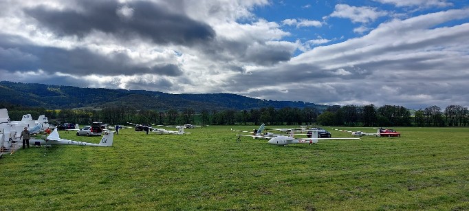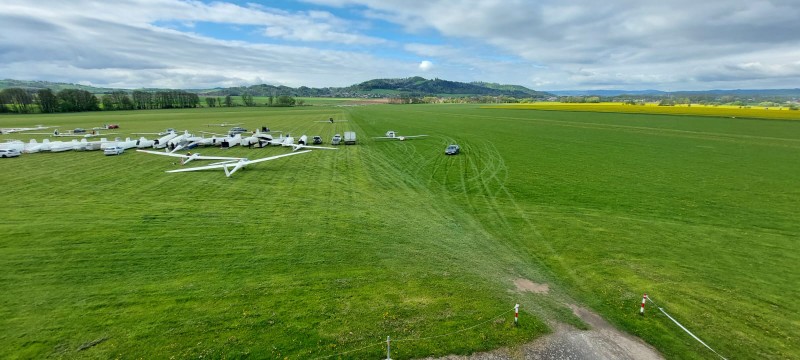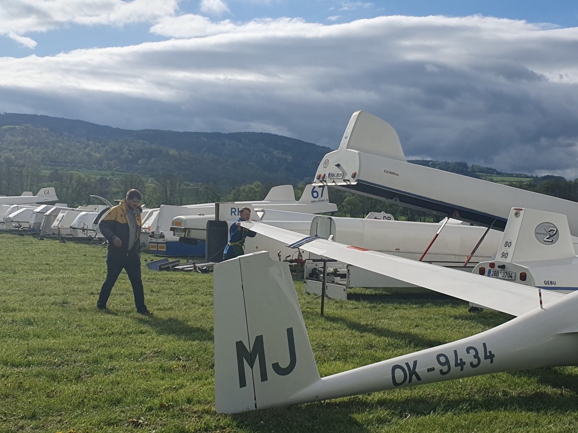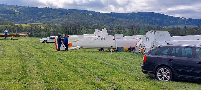 po briefingu. Tratě pro obě třídy vyhlášeny. Vzhledem k předpovědi počasí jsou pro dnešní den vypsány úlohy AAT na dvě hodiny. Klubová třída poletí minimálně 114 km, max. vzdálenost 247 km, přes tři otočné body. Kombi má trať velmi podobnou, jen delší :138 km - 308km.