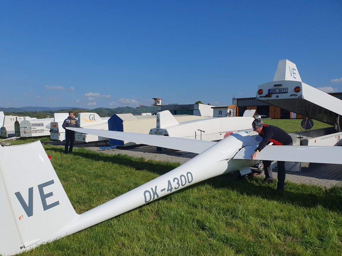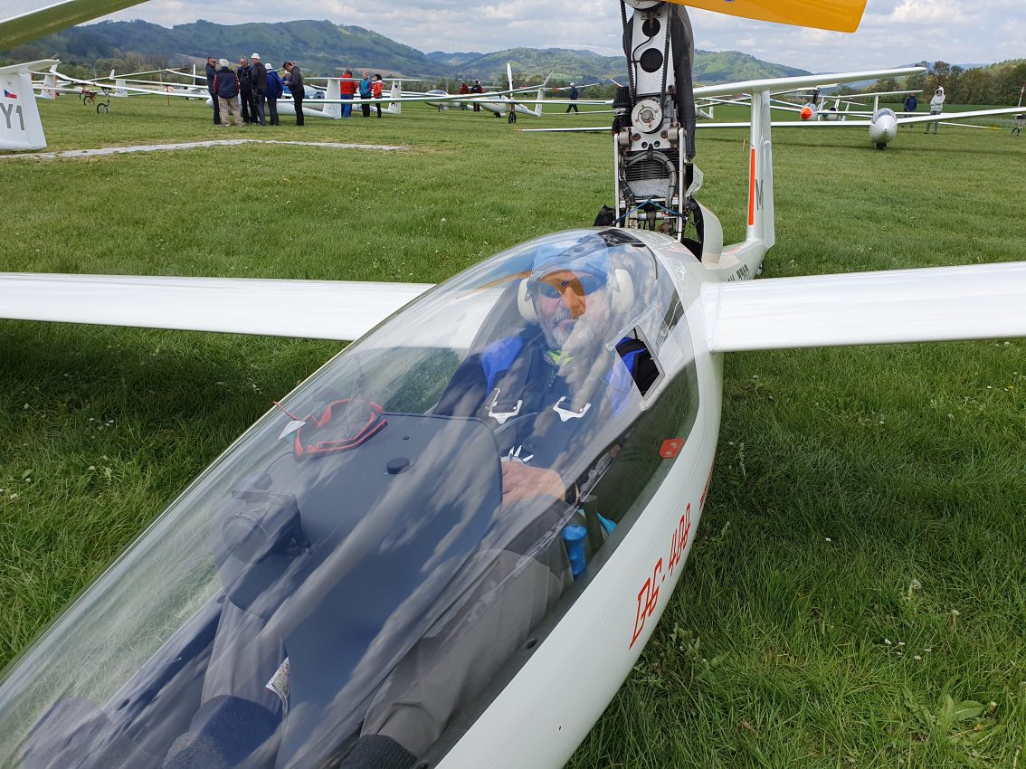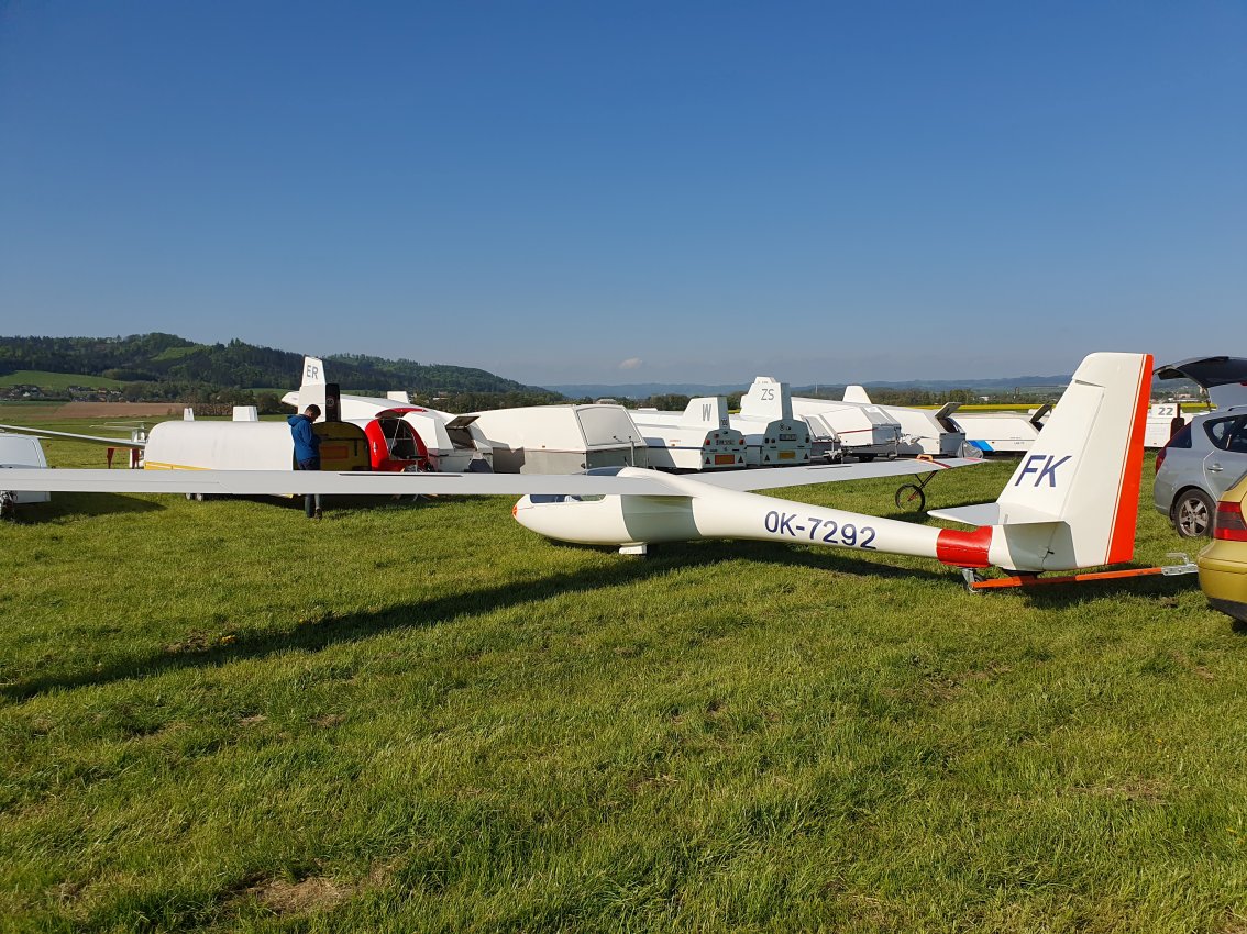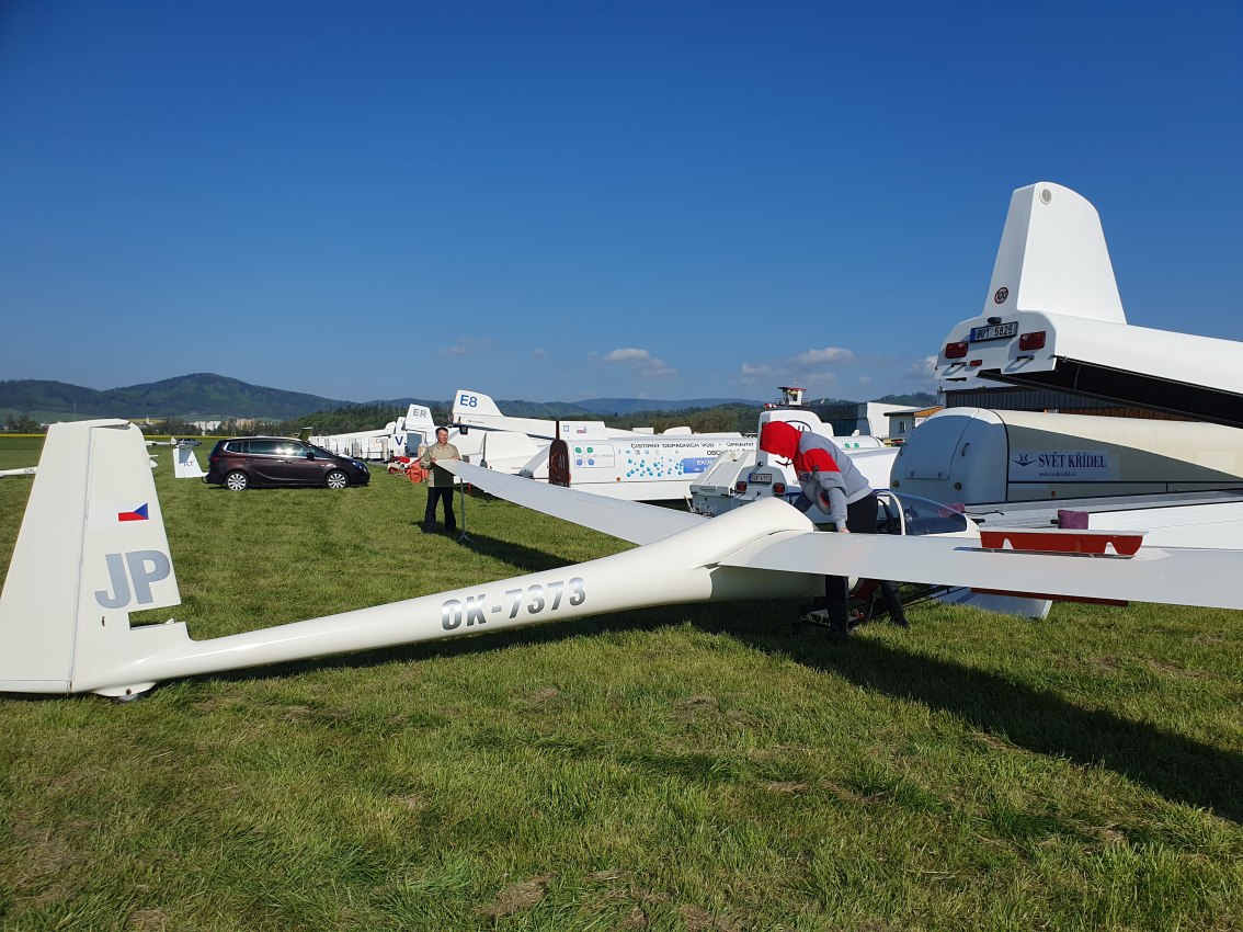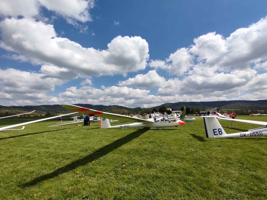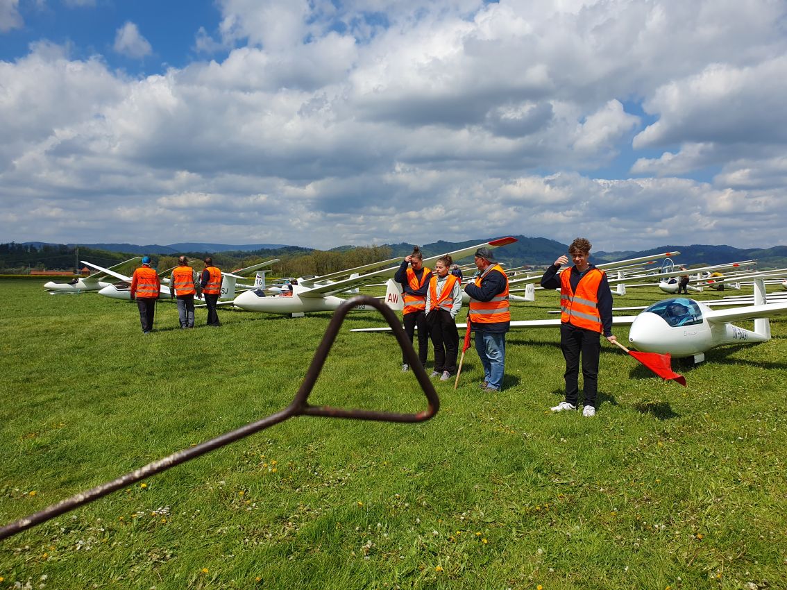 Na gridu už přibývají větroně, hlavně tedy soutěžní třídy Kombi, která je u nás umístěná vždy vzadu kvůli vyšší hmotnosti větroňů naplněných vodní přítěží a potřebou delší dráhy pro vzlet.