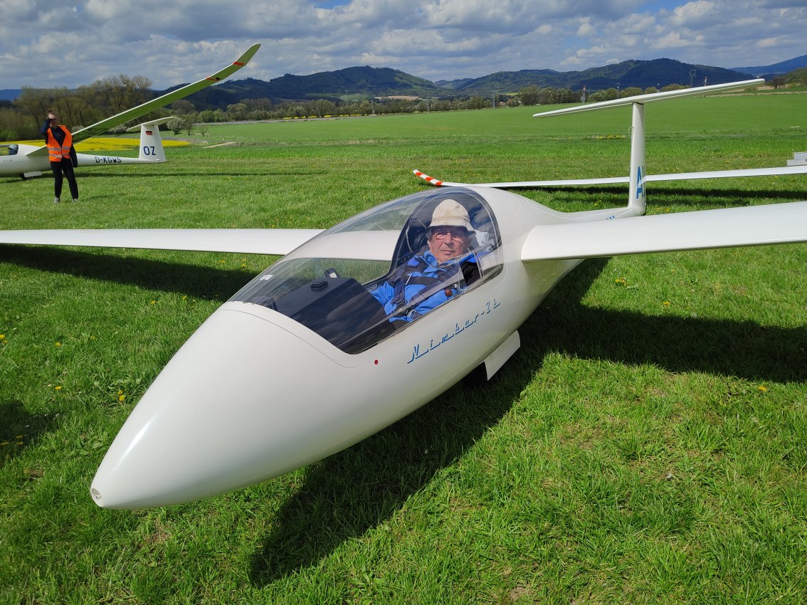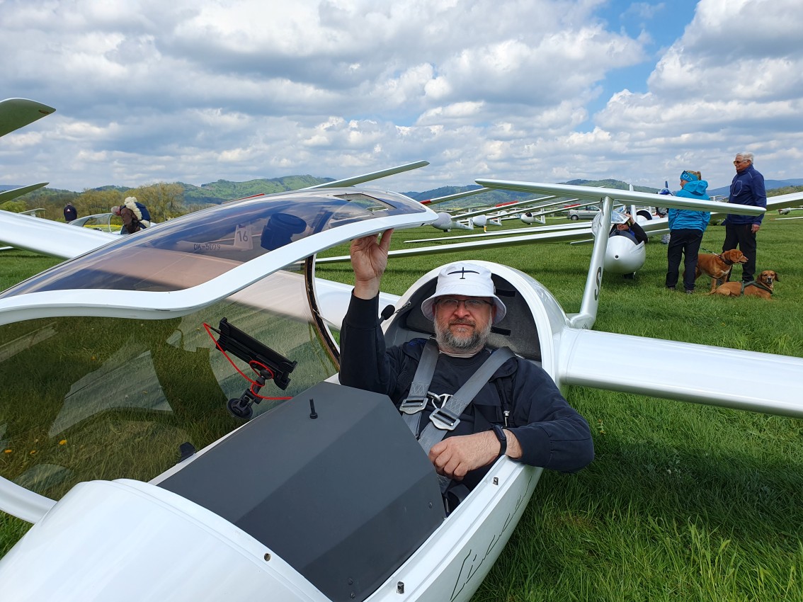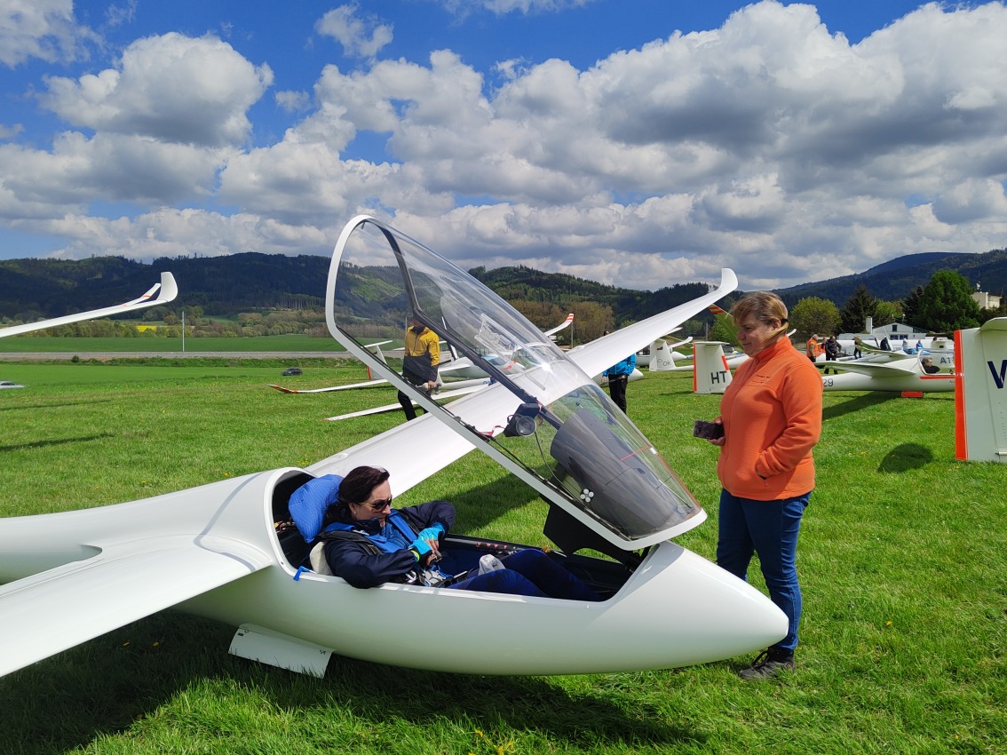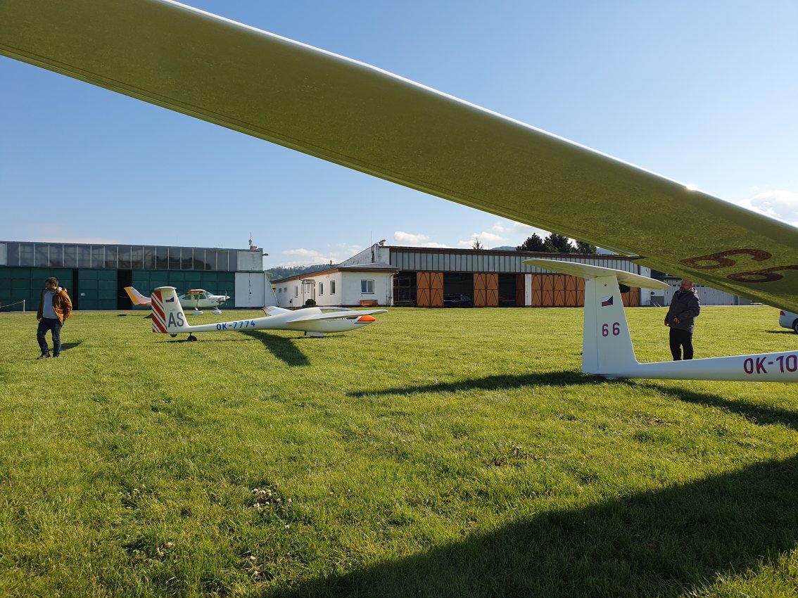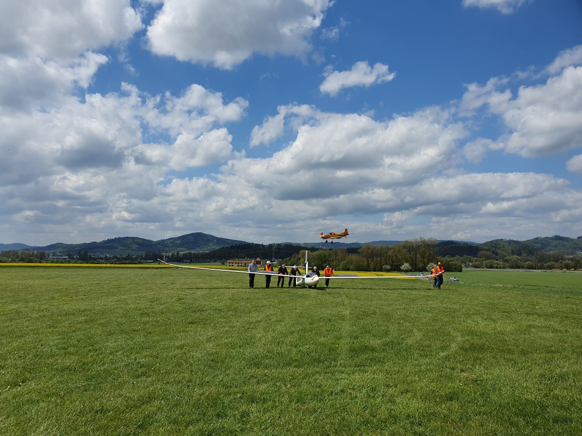 Na gridu už přibývají větroně, hlavně tedy soutěžní třídy Kombi, která je u nás umístěná vždy vzadu kvůli vyšší hmotnosti větroňů naplněných vodní přítěží a potřebou delší dráhy pro vzlet.