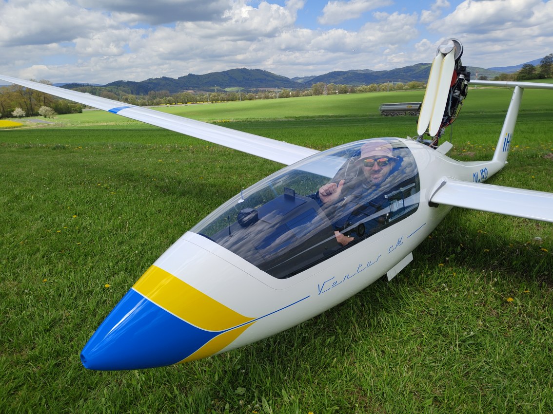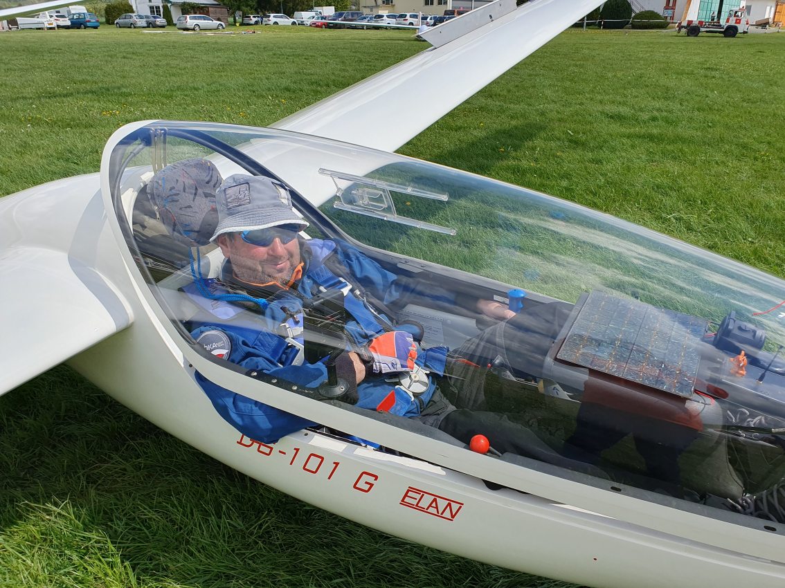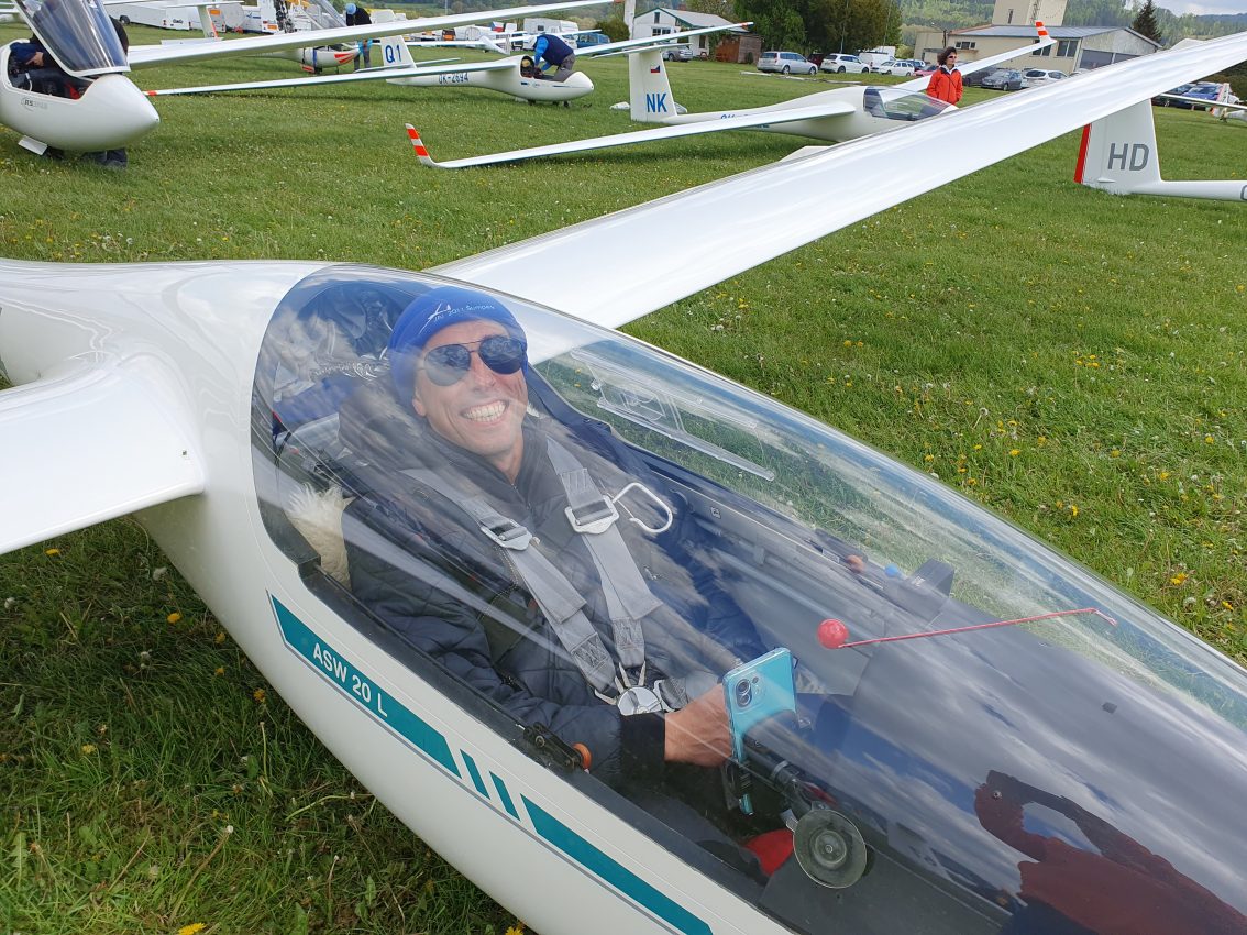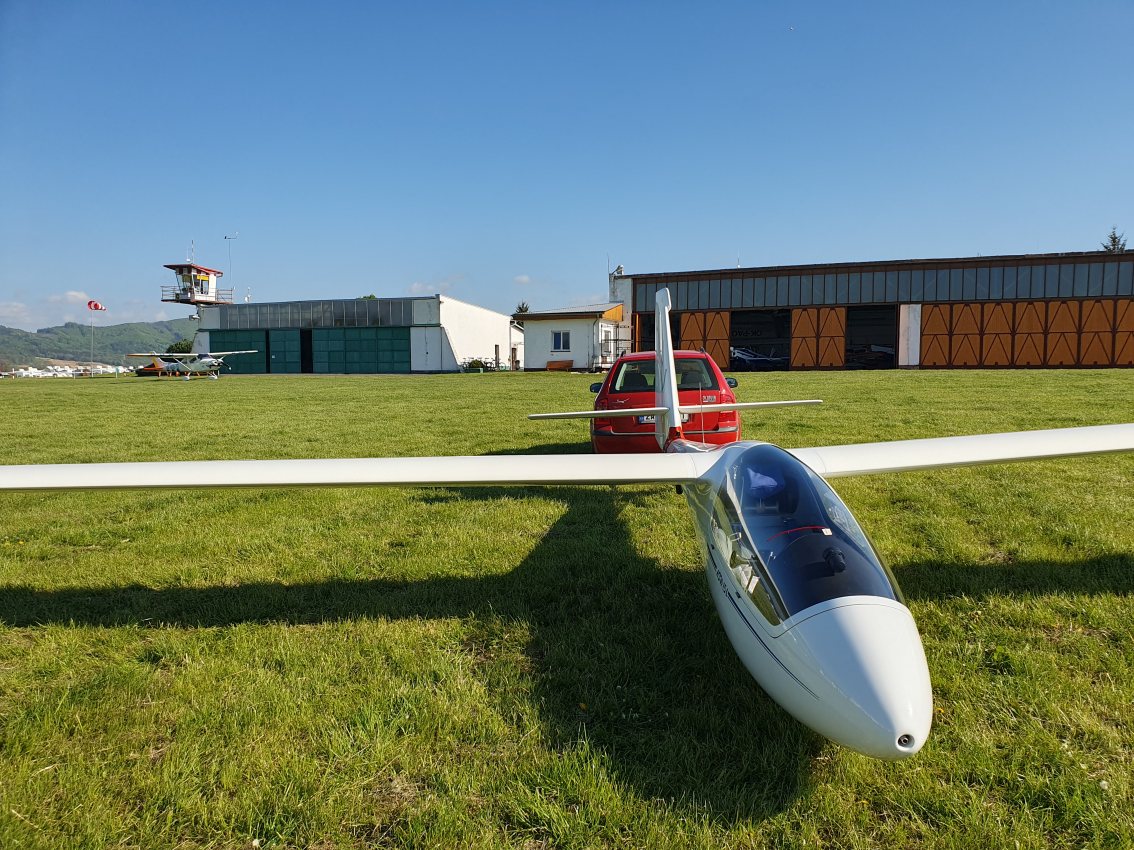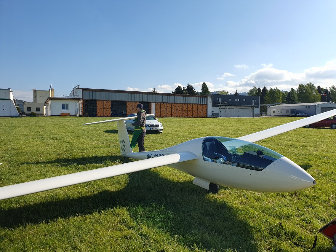 Na gridu už přibývají větroně, hlavně tedy soutěžní třídy Kombi, která je u nás umístěná vždy vzadu kvůli vyšší hmotnosti větroňů naplněných vodní přítěží a potřebou delší dráhy pro vzlet.