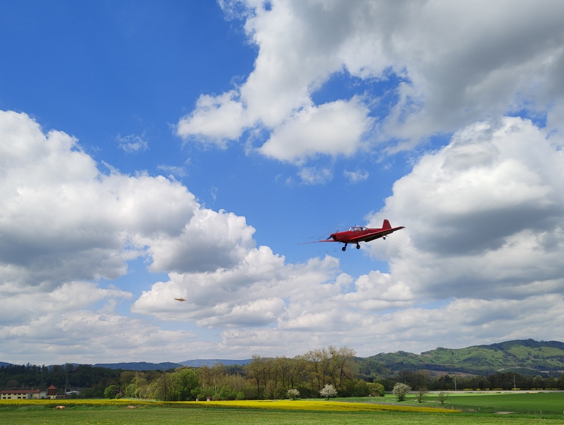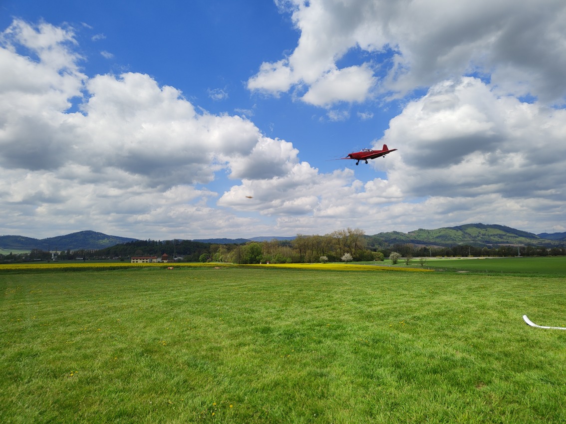 obletu přistál Y1. S20 je na poli u Štěpánova.
