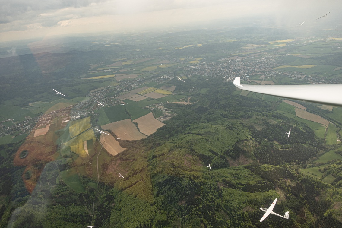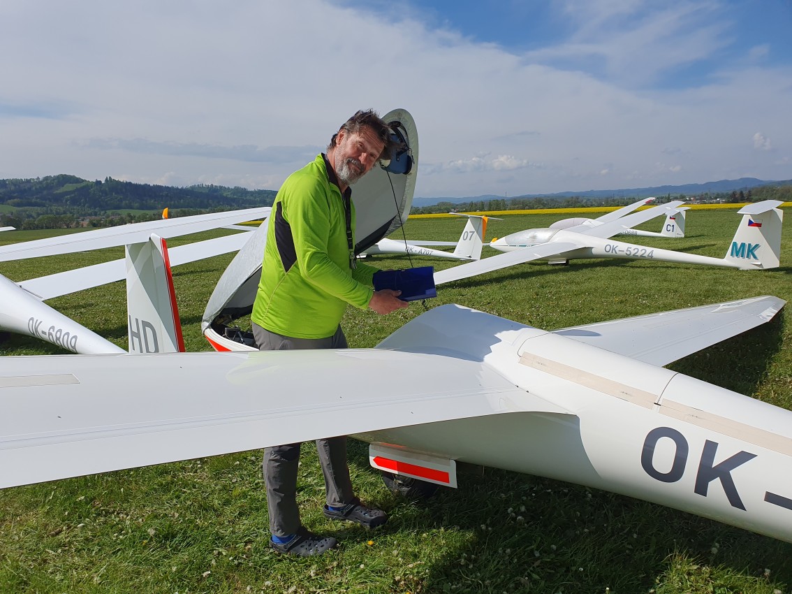 Třída klub: smolář MJ je na poli u Vikantic. dva stateční závodníci 6L a VE ještě letí.