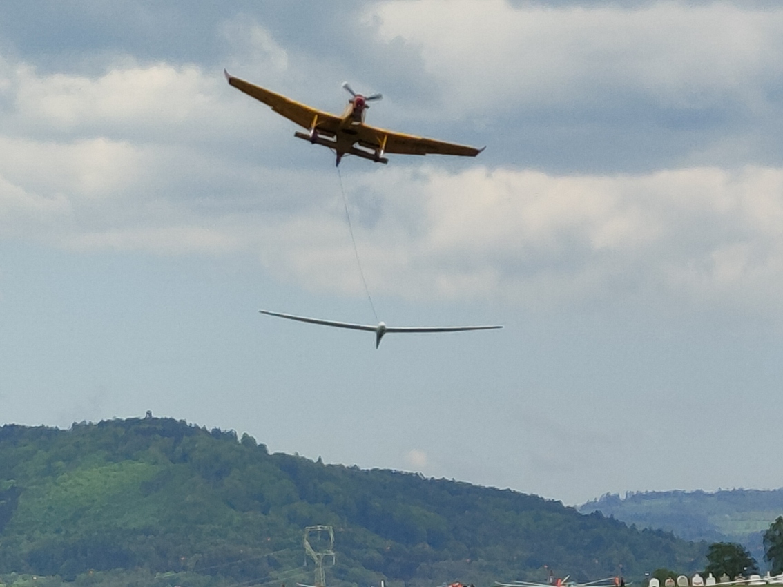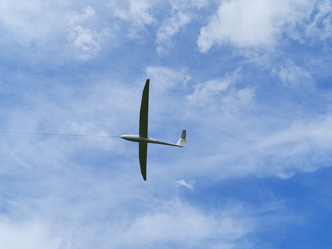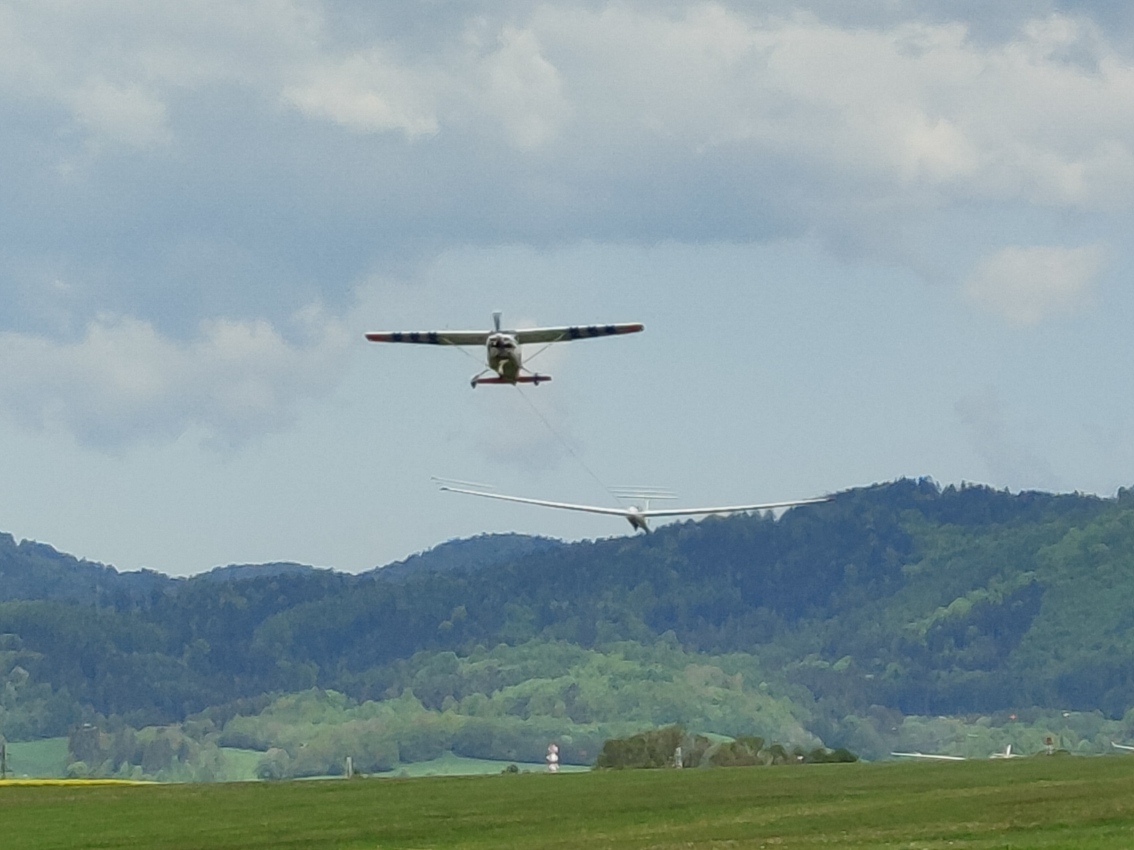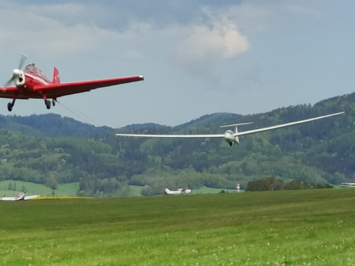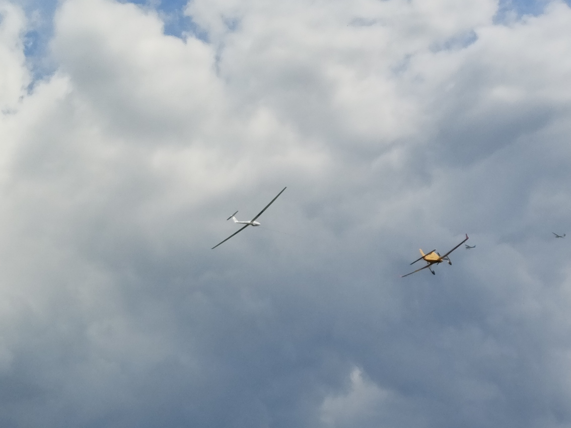 stroje uz jsou ve vzduchu. Počasí se rychle zhoršilo, z jihu se natahuje vysoká oblačnost. Pěkné mraky slibující stoupání na Orličkách, se slévají.